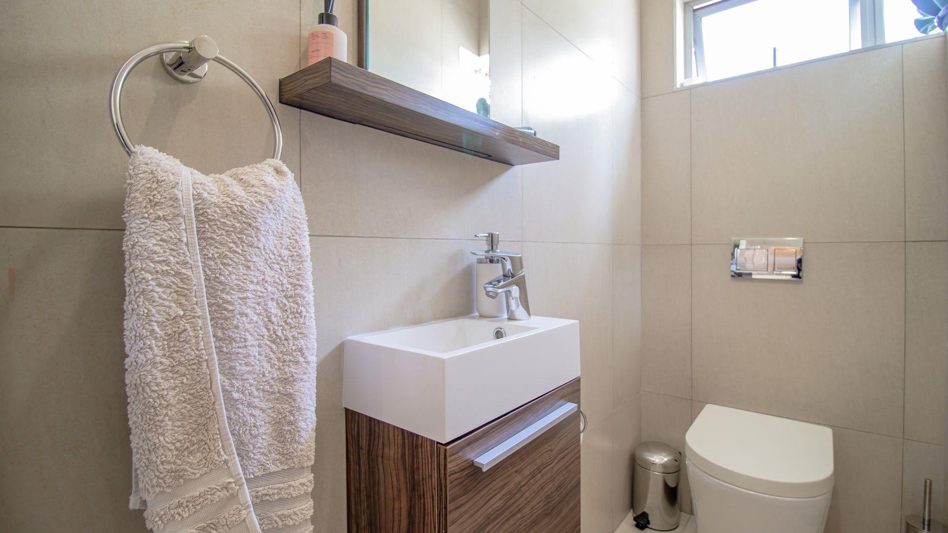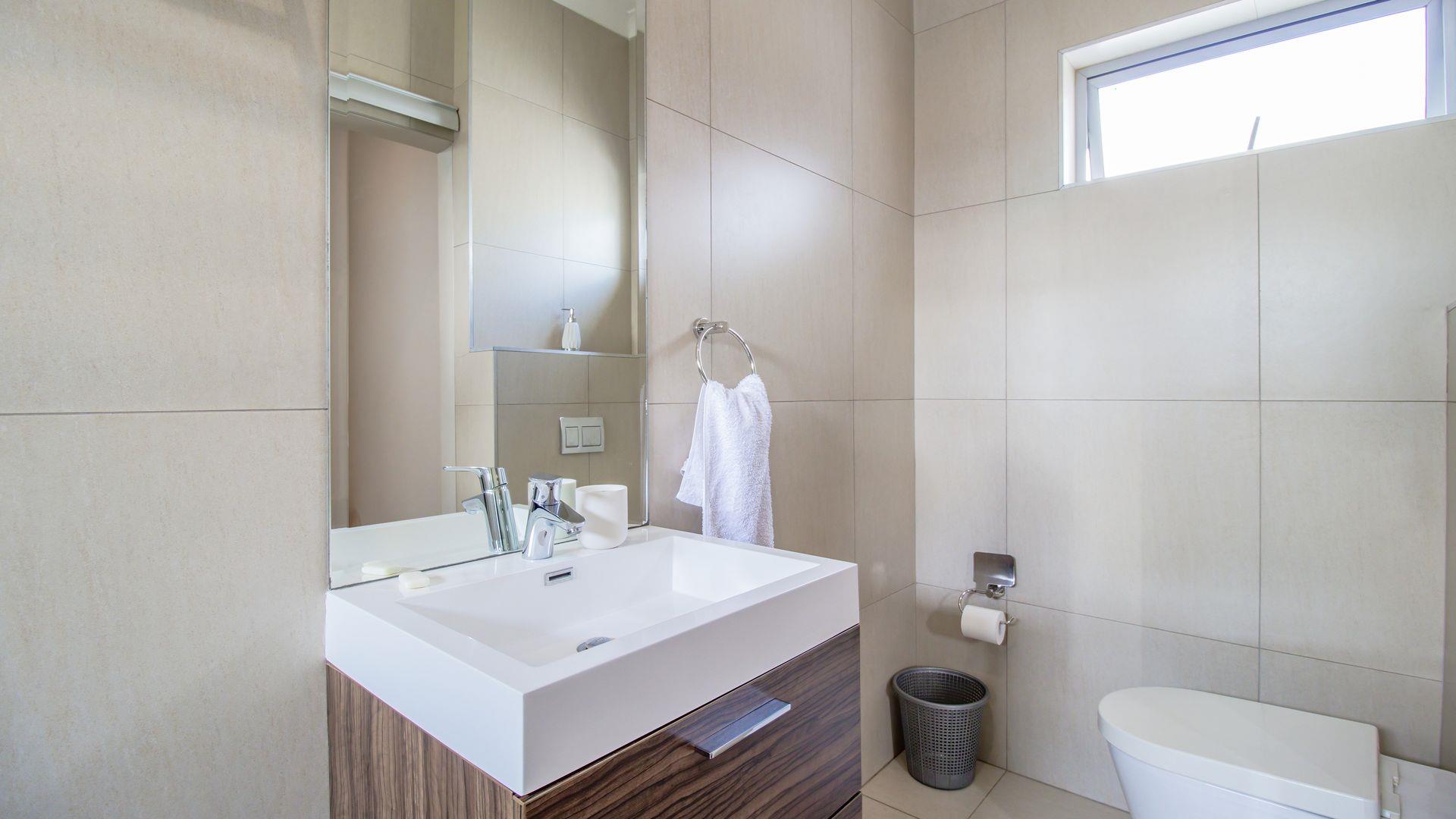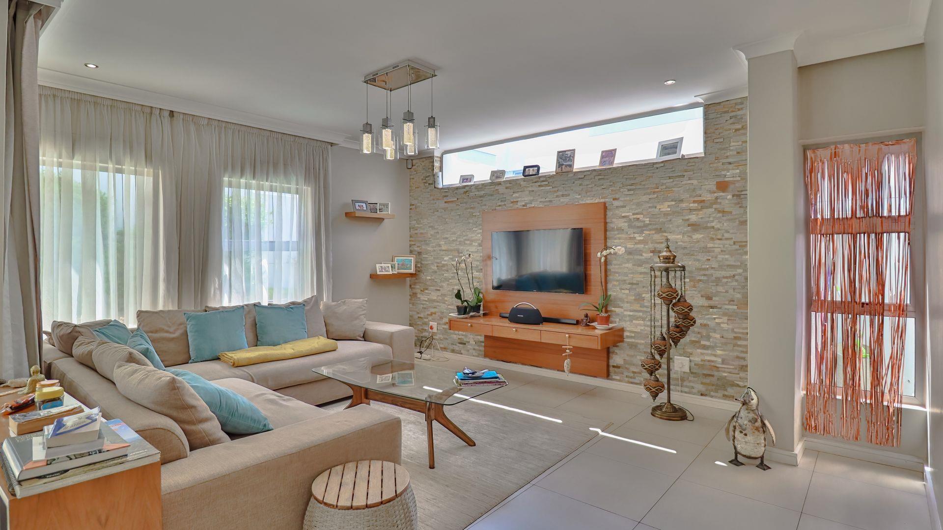 This elegant three-bedroom double-story cluster offers the perfect blend of comfort, style, and secure living. Designed with modern convenience in mind, the home features spacious open-plan living and dining areas that flow seamlessly to a covered patio overlooking a heated swimming pool—perfect for year-round entertaining and family enjoyment. The interior is defined by a neutral palette, clean uncomplicated design, and filled with bespoke pieces, creating a calm, contemporary, and personalized atmosphere throughout.